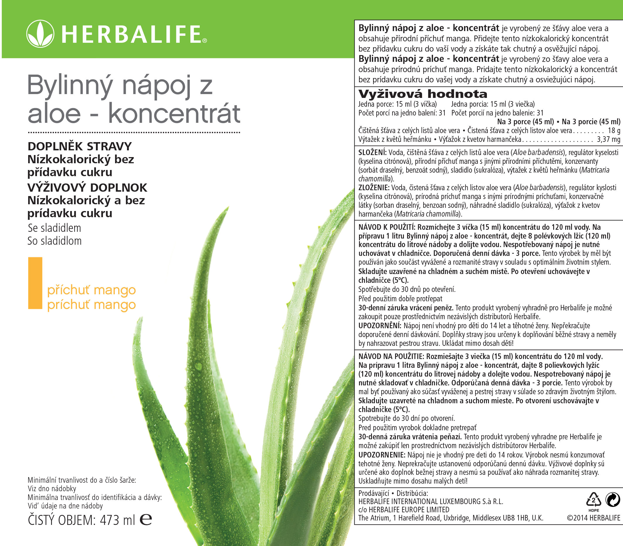 Bylinný koncentrát z Aloe příchutí manga vám poskytne ideální způsob, jak si vychutnat zdravý, osvěžující a skvěle chutnající nápoj a zároveń zvýšit příjem tekutin.