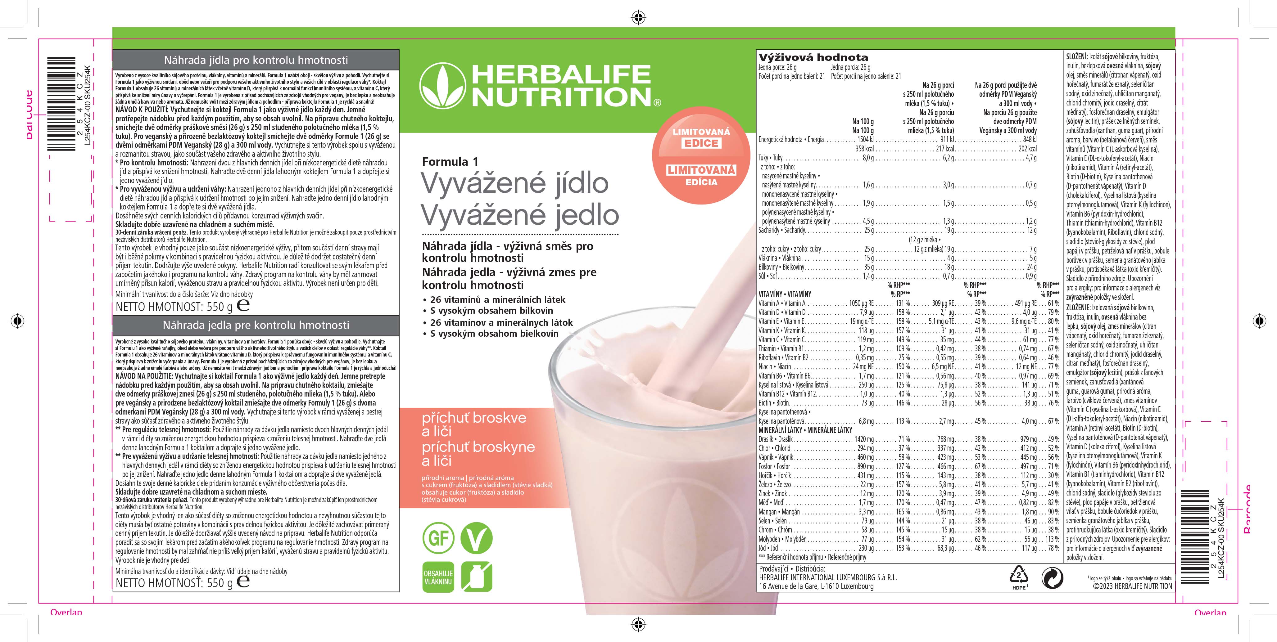 Připravíte-li si koktejl Formula 1 s 250 ml polotučného mléka, pak vám jedna porce dodá: 216 kcal, 18g bílkovin, 4 g vlákniny