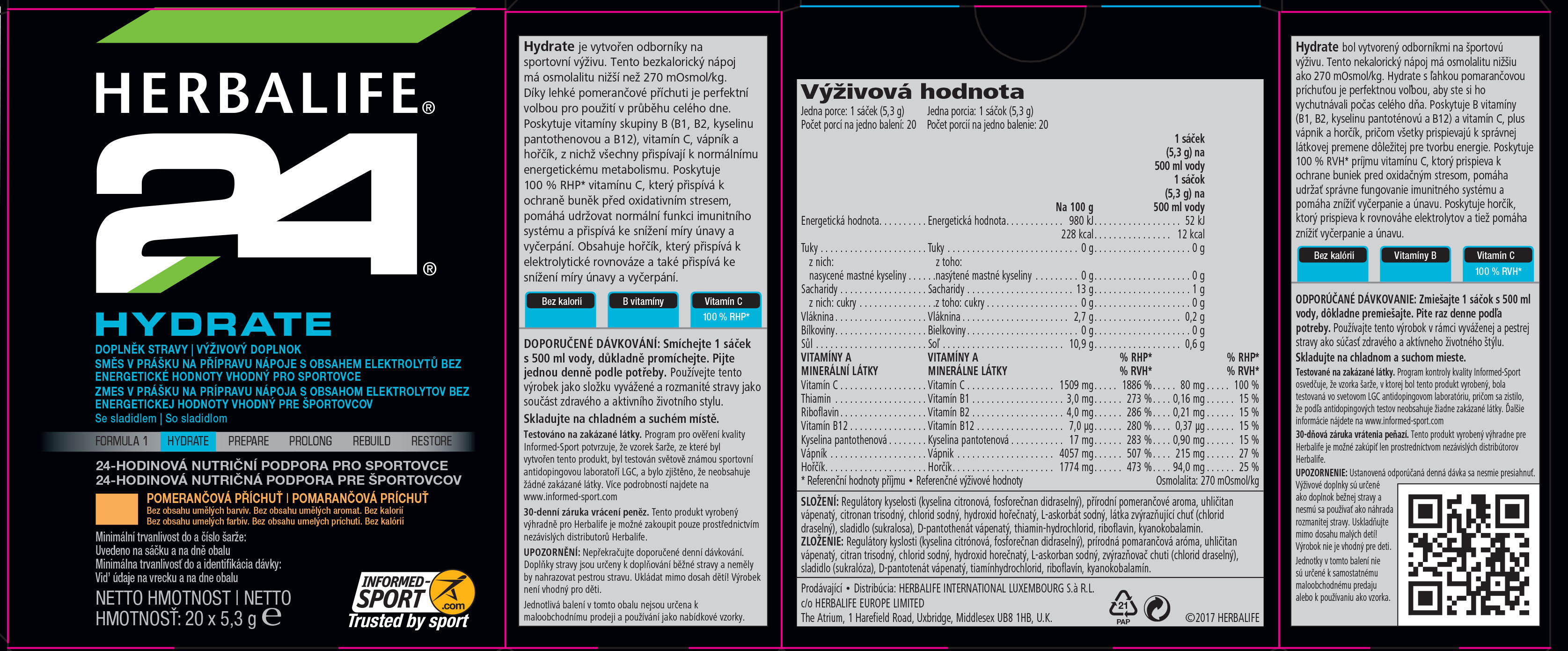 Herbalife H24 Hydrate - pomeranč 20 x 5,3g
