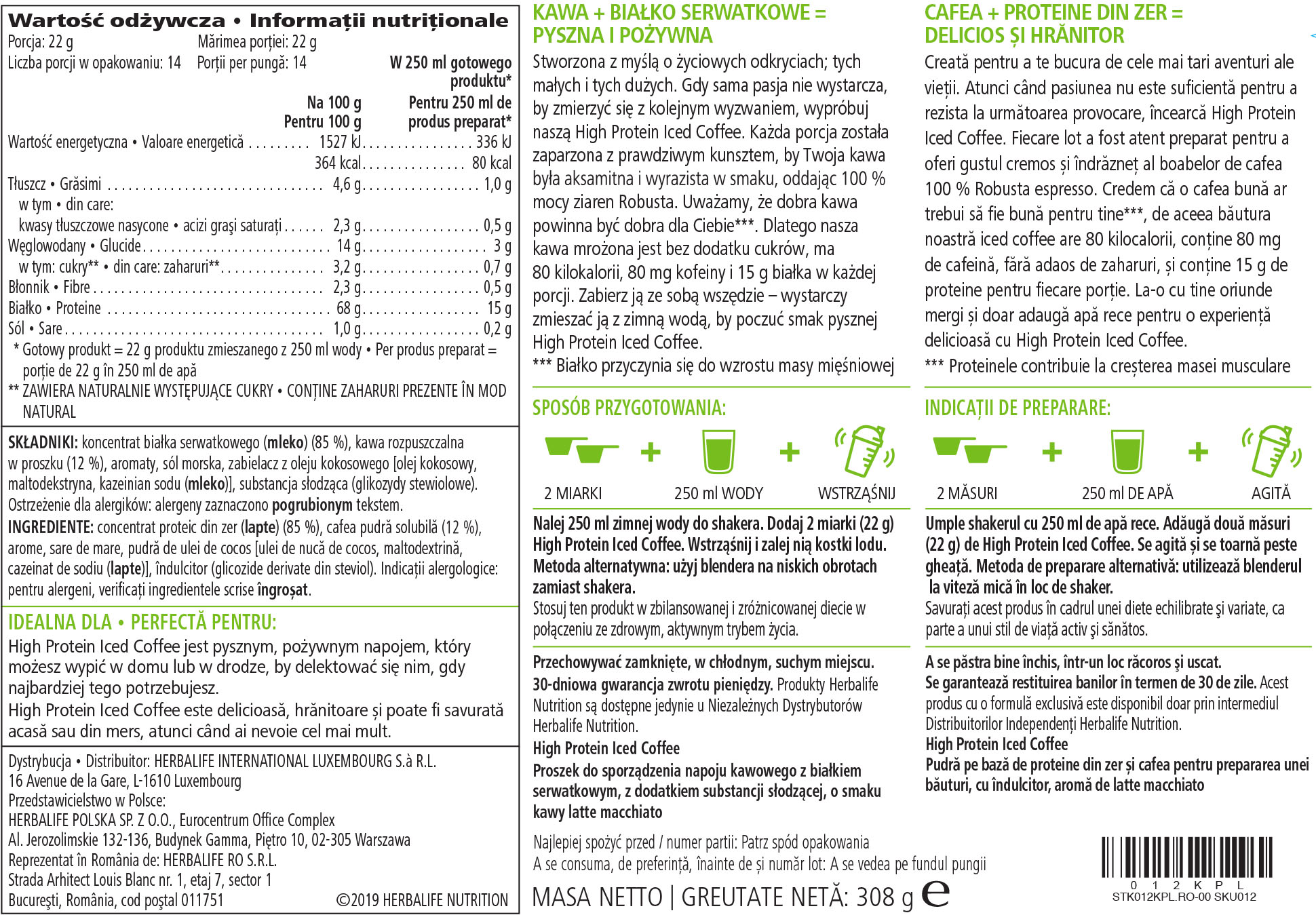 Herbalife High Protein Iced Coffee 308g