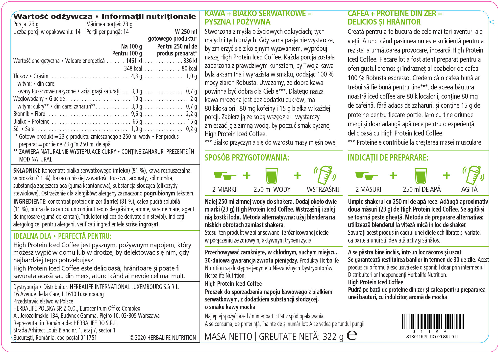High Protein Iced Coffee je vyroben s ohledem na naše každodenní životní objevy. Pokud Vaše vášeň sama o sobě nestačí čelit další výzvě, vyzkoušejte naši vysoce proteinovou ledovou kávu. Každá porce bude připravena se skutečným řemeslným zpracováním, takže vaše káva bude sametová a výrazná v chuti, což zaručuje 100% pevnost kávových zrn Robusta. Věříme, že dobrá káva by měla být dobrá hlavě pro Vás. To je důvod, proč je naše ledová káva bez přidaných cukrů, má 80 kcal, 80 mg kofeinu a 15 g bílkovin, nezbytných pro růst svalové hmoty, a to v každé porci.